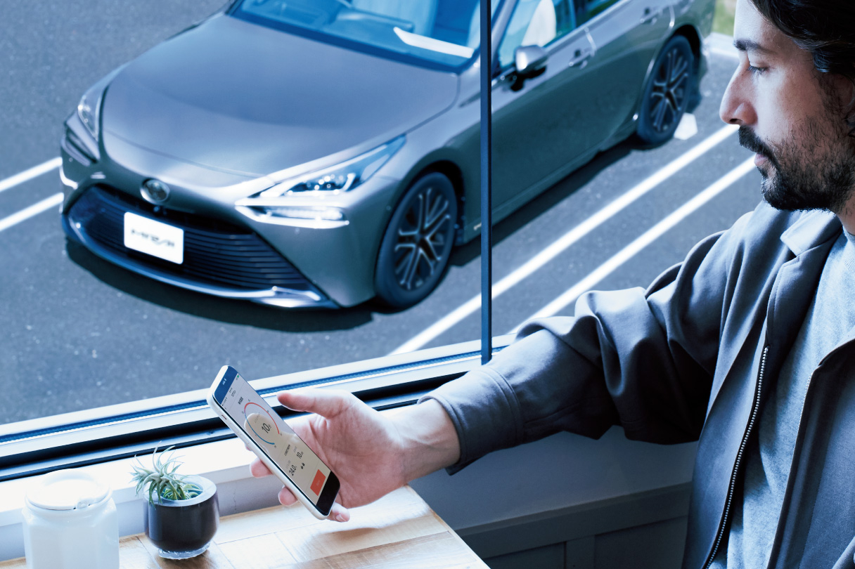 運転中でも、離れていても、MIRAIがパートナーに。クルマと情報をつなぐコネクティッドによって、移動をスマートにサポートします。